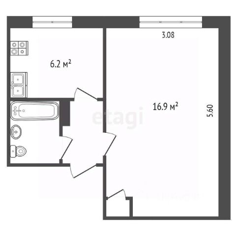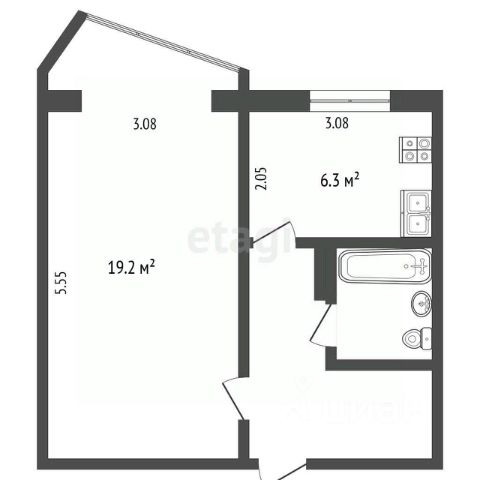 - кухня/гостинная 18.9 кв.метров с раскладным диваном и телевизором, рабочим (компьютерным) столом, кухонной мебелью и техникой;
