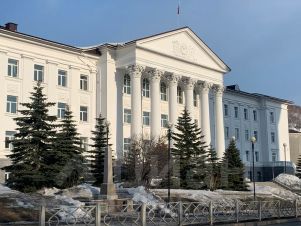 В доме продуктовый магазин. Через дорогу супермаркет с местной продукцией, в том числе икра, рыба.