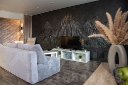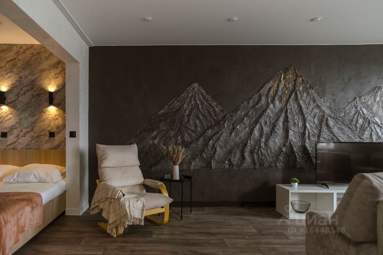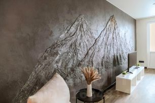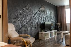 • Эксклюзивный интерьер — стена с 3D-вулканами из декоративной штукатурки.