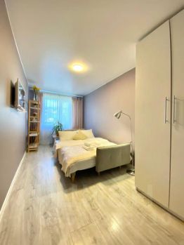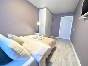 В квартире есть все необходимое для комфортного пребывания: двуспальная кровать, диван двуспальный, шкаф, гардеробная, холодильник, плита, чайник, микроволновка и вся необходимая посуда для приема и приготовления пищи, а также стиральная машина, 2 телевизора (в каждой комнате), утюг, гладильная доска, дорогое и качественное белое постельное белье (страйп - Сатин).
