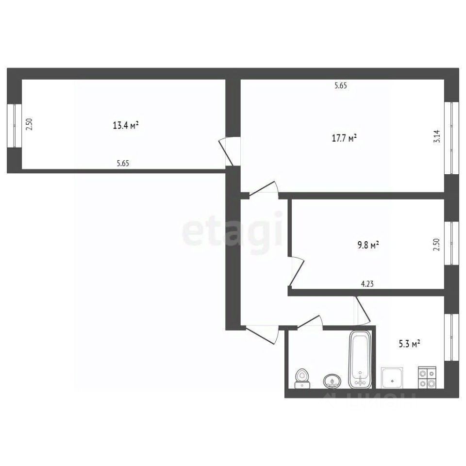 57,7 м²