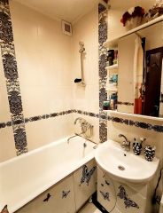 • Санузел: Ванная комната полностью отделана кафелем.