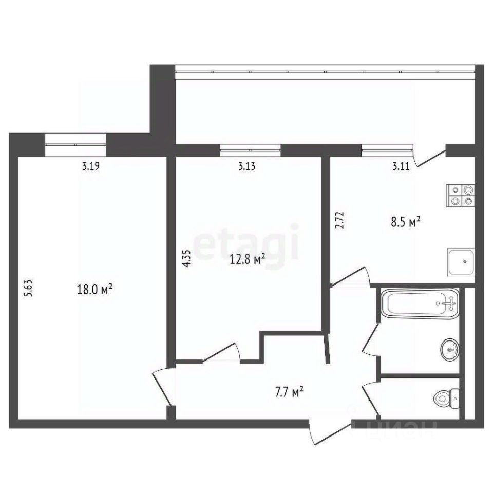 Планировка: 2 изолированные солнечные комнаты, раздельный санузел, просторная лоджия.