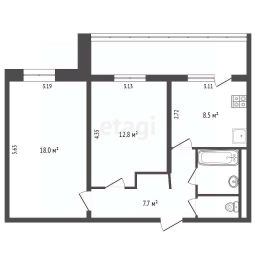 Общая площадь: 51.5 м²