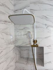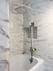 Полы: Керамогранит и система "тёплый пол" Потолки: Натяжные потолки с современным освещением (люстры, бра, светильники).