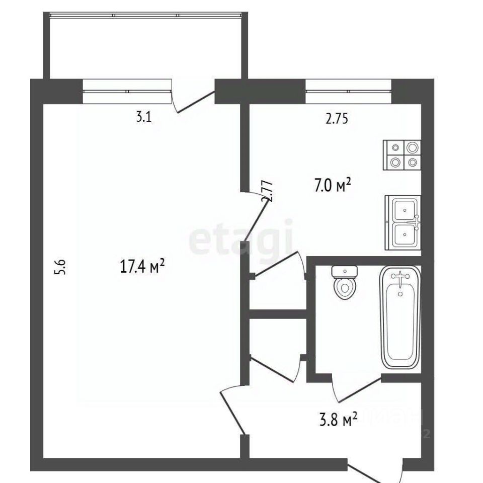 Продается1-комнатная квартира 31,9 м² в п. Раздольный, вблизи базы отдыха "Зеленовские озерки" и "Раздолье камчатки".