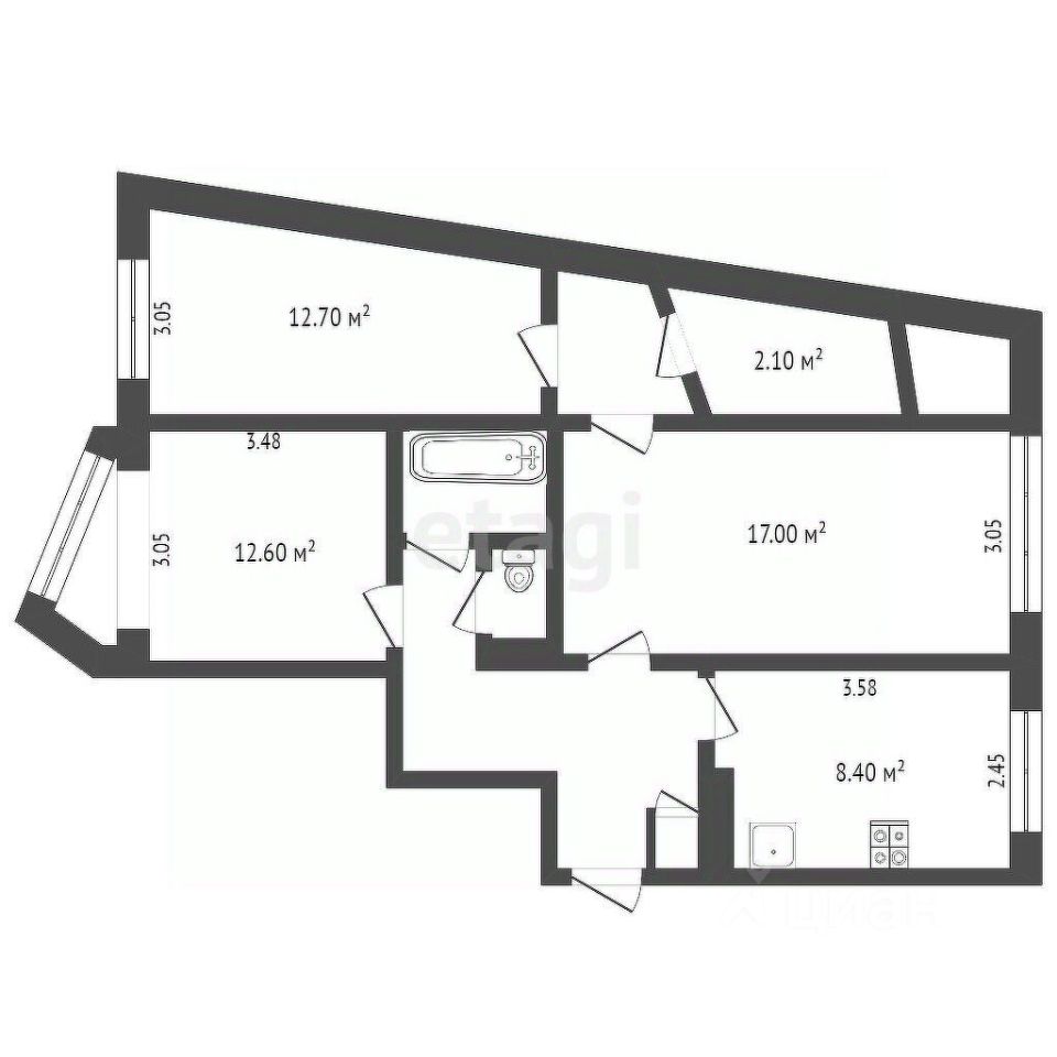 Представляем вашему вниманию уникальное предложение — трехкомнатную квартиру площадью 67,3