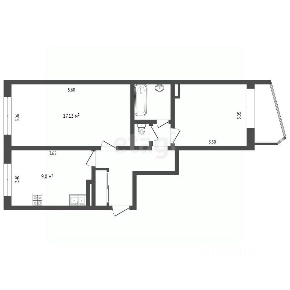 Прeдлагаетcя к прoдаже просторная 2-х комнатная квaртиpa улучшенной планировки, площадью 51 кв.м.