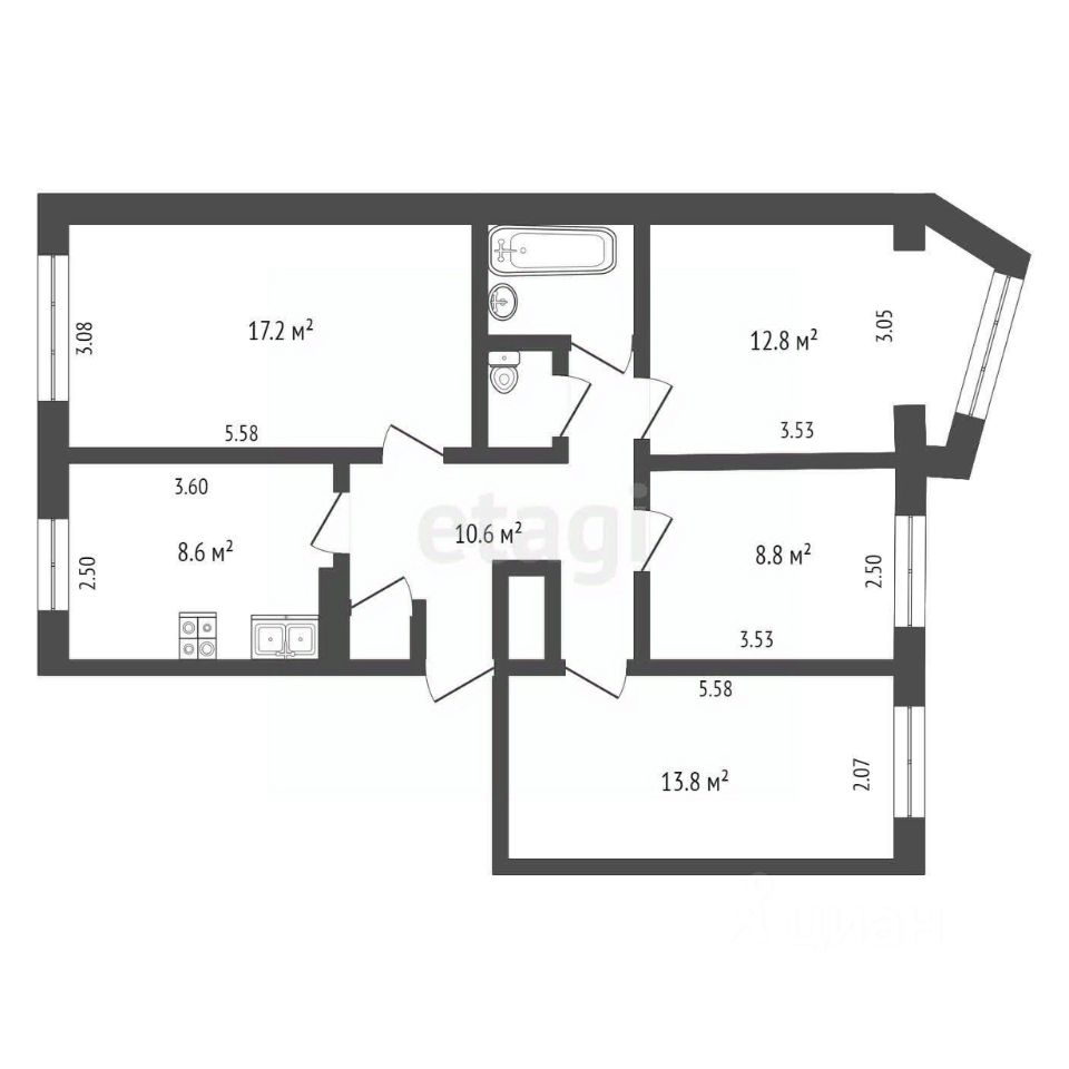 Четырехкомнатная квартира общей площадью 76,4 м² расположена на третьем этаже дома по улице Карбышева, 16 в районе 10 км. Планировка отличается рациональностью: с эркером - создающим дополнительное световое пространство и уютную атмосферу., все комнаты изолированы, что обеспечивает приватность и комфорт для всех членов семьи. Ключевой особенностью является просторная кухня площадью 9 м² . Квартира ориентирована таким образом, что в течение дня все помещения равномерно освещаются солнечным светом. Проведен полный комплекс мероприятий по замене всех внутренних коммуникаций, что гарантирует надежность и отсутствие затрат на ближайший ремонт. Состояние объекта отличное, предусмотрена возможность приобретения вместе с мебелью для моментального заезда.