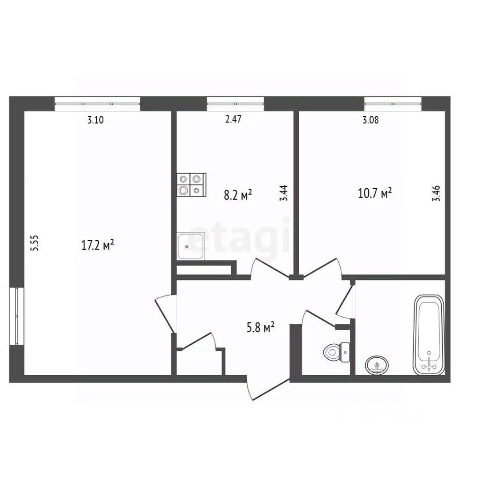 Продается светлая двухкомнатная квартира с кухней 8.2 кв.м в районе с полным комплексом социальной и бытовой инфраструктуры. В пешей доступности расположены школа, детские сады, городская больница и разнообразные магазины, что обеспечивает максимальное повседневное удобство. Квартира находится в состоянии под чистовую отделку, что позволяет новому владельцу сразу приступить к ремонту по собственному проекту и вкусу без необходимости демонтажа старых коммуникаций. В объекте уже выполнена важная техническая часть: произведена полная замена радиаторов отопления, а также систем холодного и горячего водоснабжения, что гарантирует надежность и долговечность инженерных сетей на годы вперед. Такое состояние идеально подходит как для тех, кто ценит возможность создать интерьер с нуля, так и для инвесторов, рассматривающих объект с целью последующей сдачи в аренду. Транспортная доступность района позволяет быстро добраться до разных частей города. Это практичное и выгодное вложение в недвижимость, где готовность к ремонту является ключевым преимуществом, экономящим время и ресурсы будущего собственника.