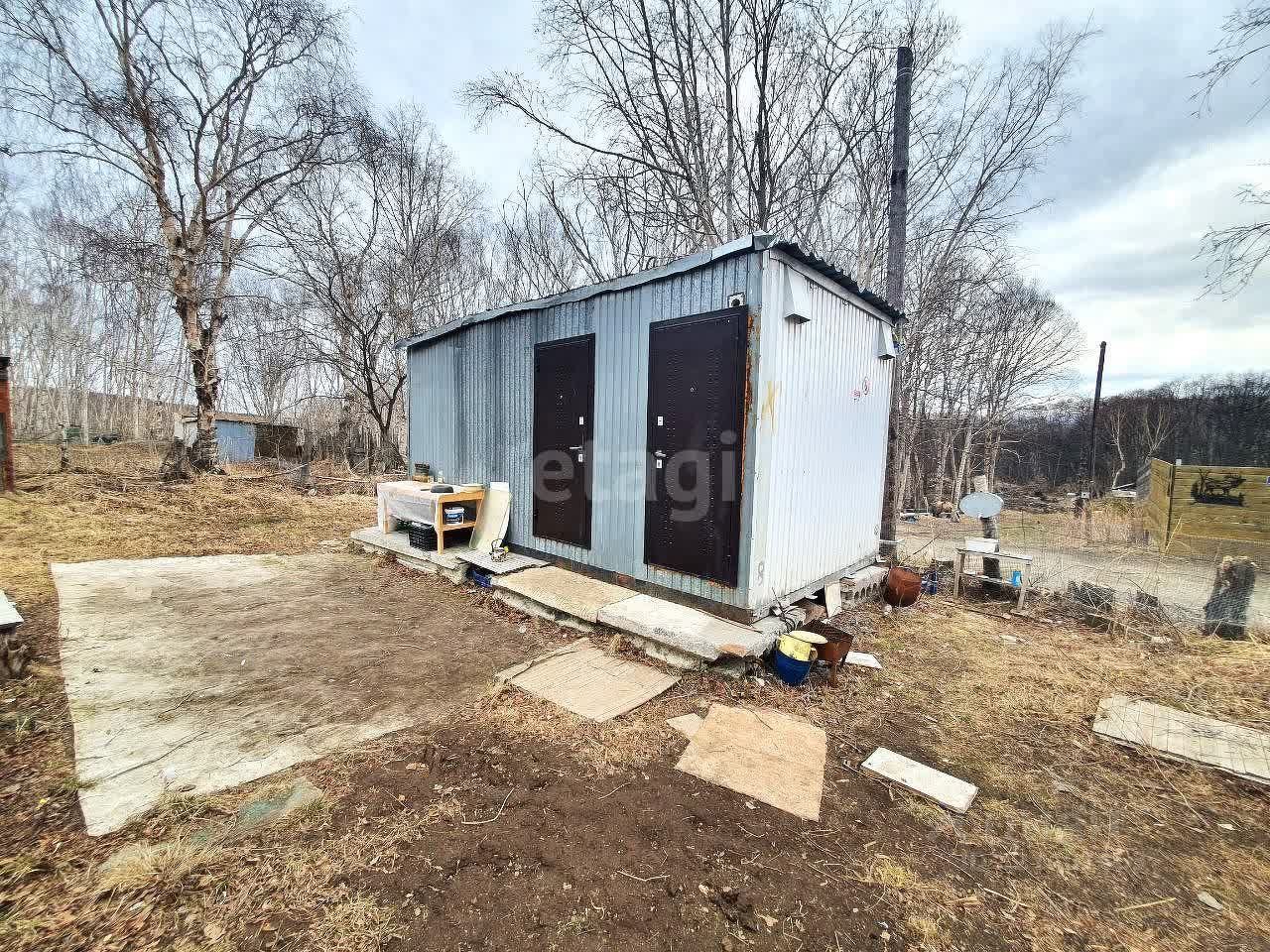 Имеются постройки: теплица и небольшой ветхий домик, представляющий множество вариантов его использования.