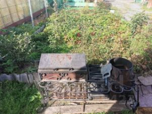 Просторная баня с помывочной и комнатой отдыха, зона с кованым мангалом.