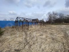 Участок 10 соток, квадратной формы. На участке находится небольшой домик и хоз. постройка. Рядом с участком протекает ручей.